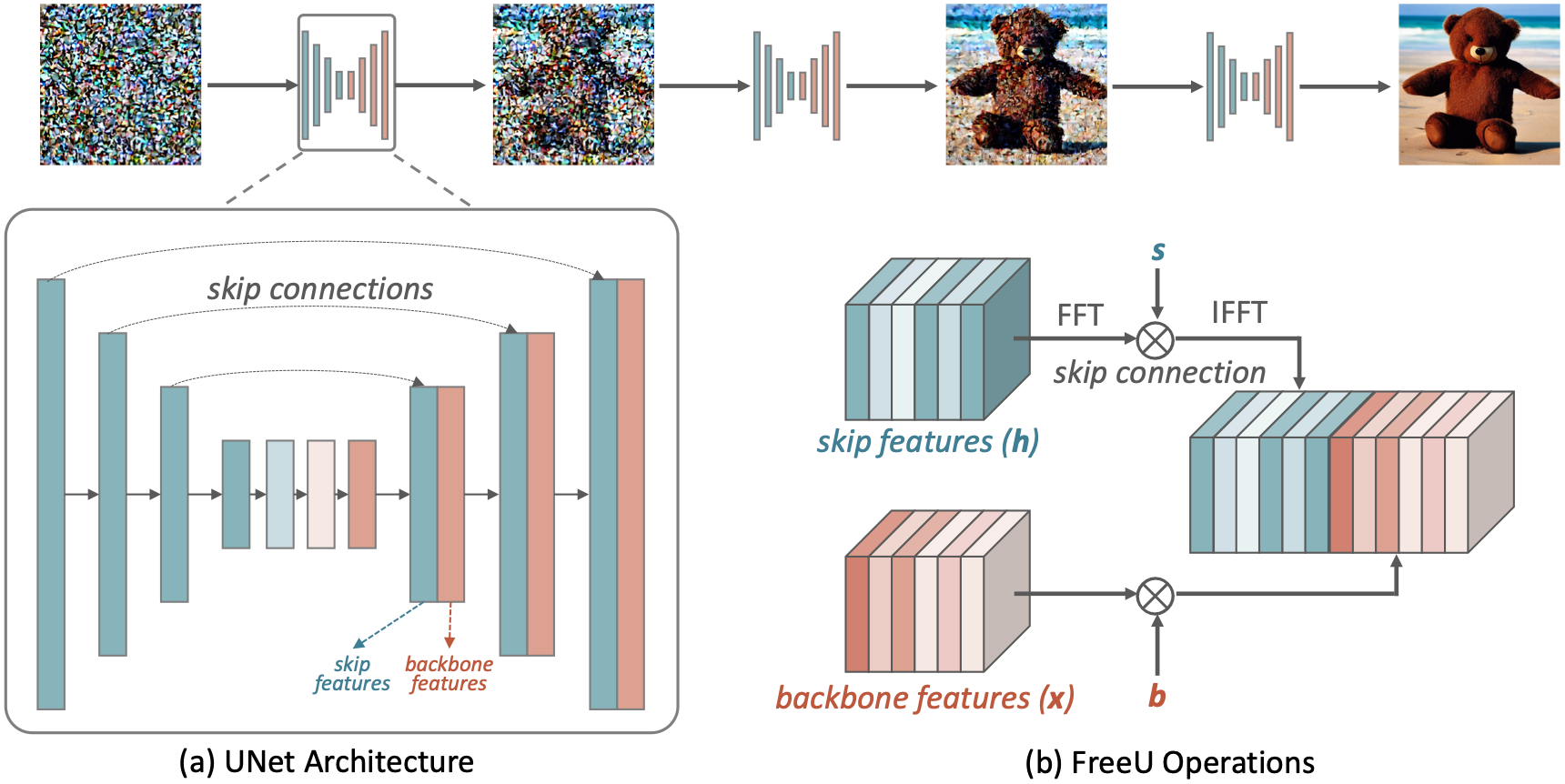 In this paper, we uncover the untapped potential of diffusion U-Net, which serves as a "free lunch" that substantially improves the generation quality on the fly. We initially investigate the key contributions of the U-Net architecture to the denoising pro