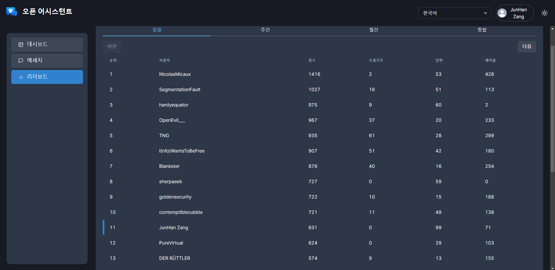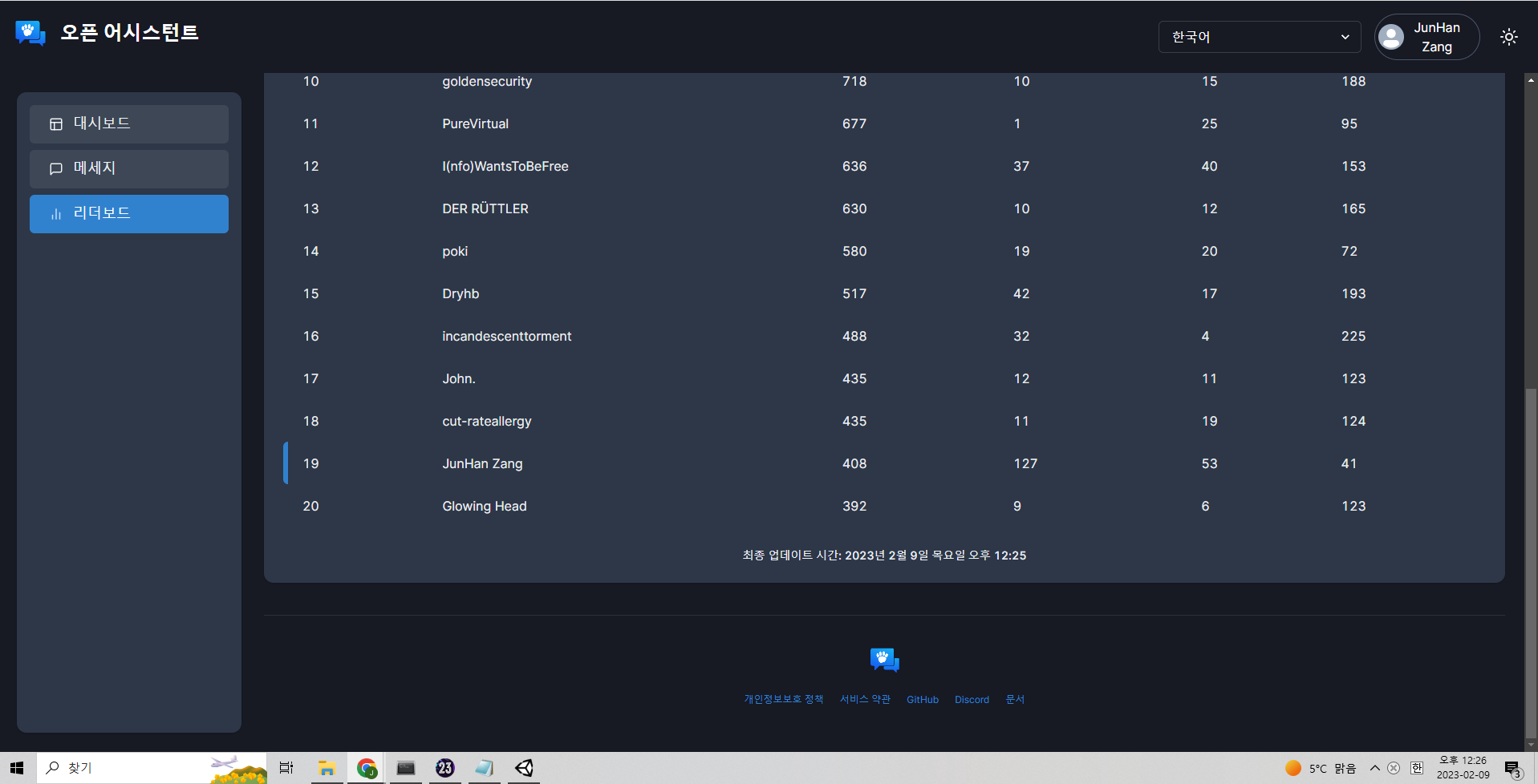 | 일간이긴 하지만 오픈 어시스턴트 1위 달성 (0) | 2023.02.10 |