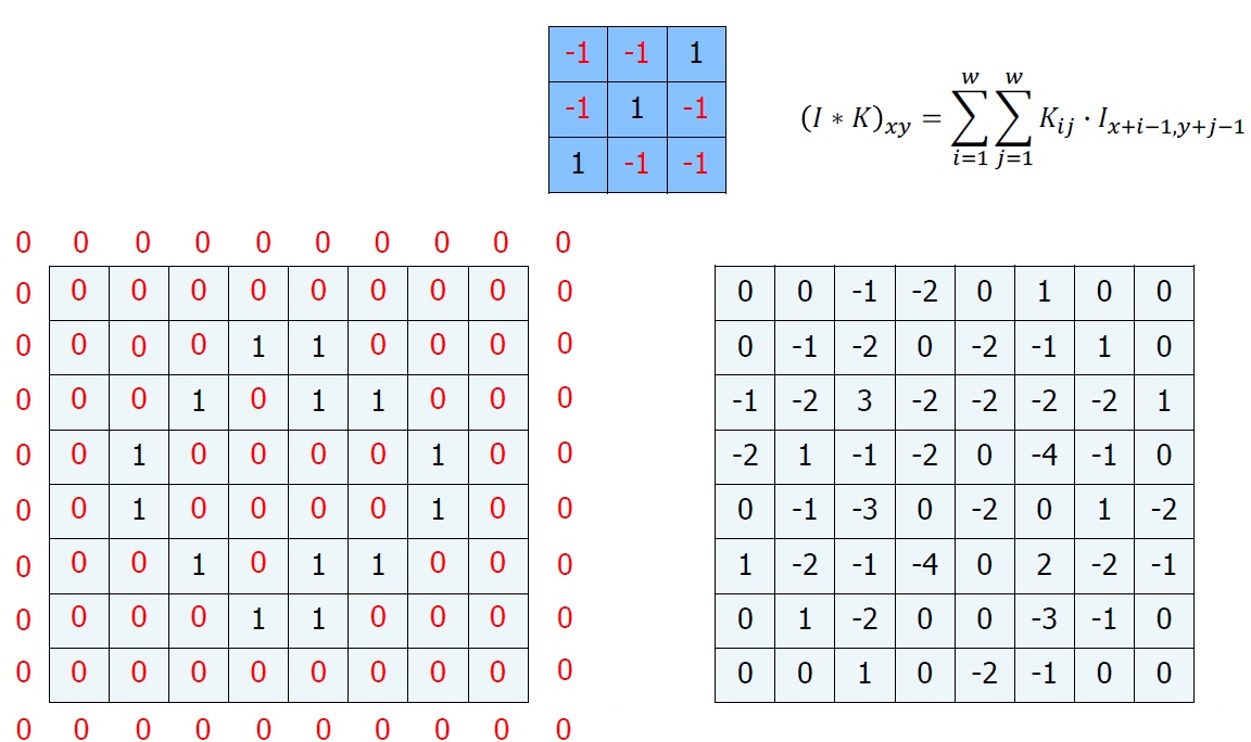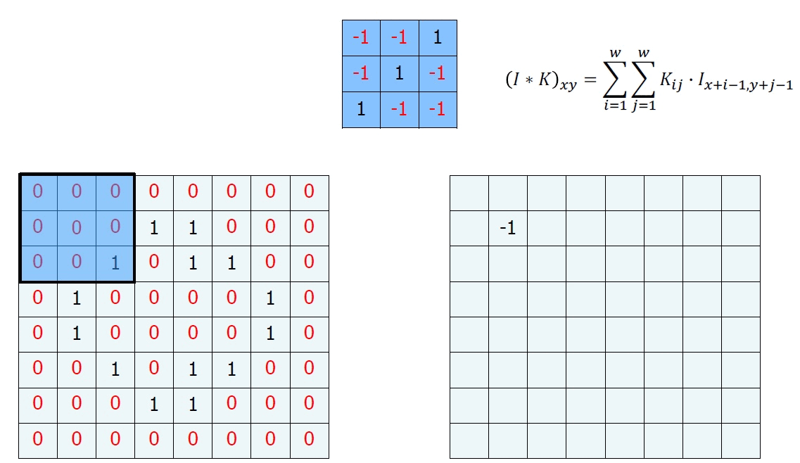 이런 행렬 연산을 Convolution이라고 한다. 마지막 계산을 하고 남는 부분이 있는데, 이는 일반적으로 다음과 같이 하여 매꾸어준다.