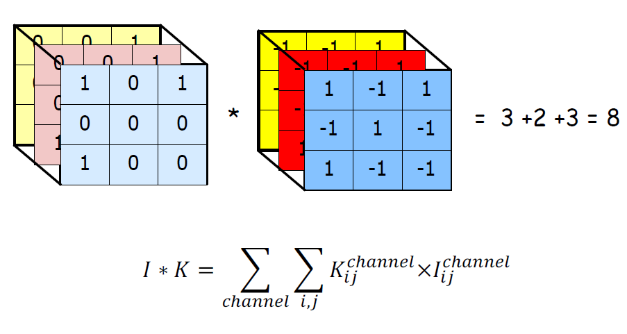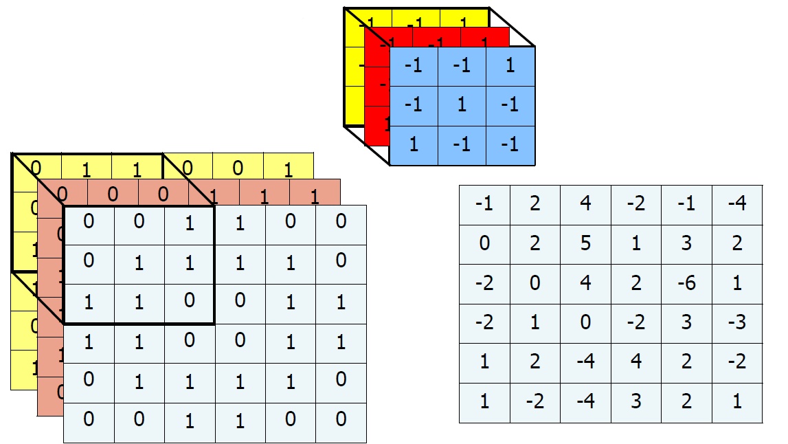 따라서 우리는 Feature Extraction을 위해 필터를 RGB 3개의 행렬에 계산해야 한다. 이를 일반적으로 3D Convolution이라고 하는데, Convolution이라고 해도 이것과 동일한 것으로 이해해도 무방하다. 나중에 1D Convolution을 오히려 따로 정의하기 때문이다.