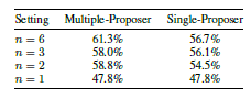 Table 4: 제안자 대 집계자로서의 다른 모델의 영향