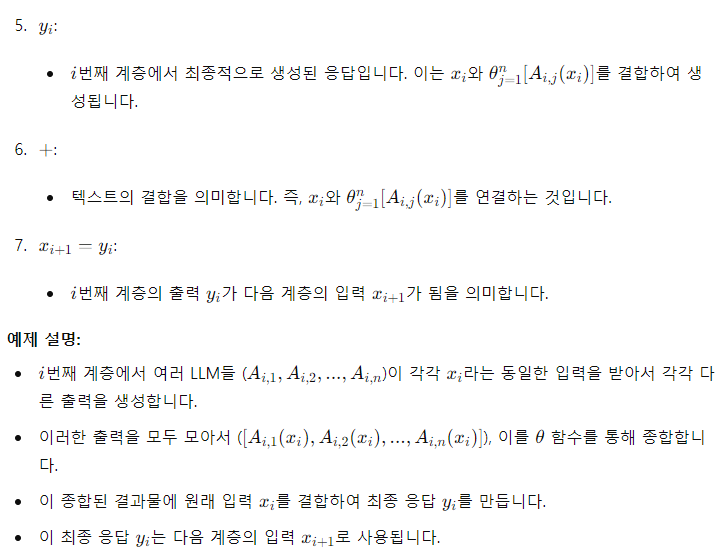 - 집계자는 다른 모델의 응답을 통합하여 단일의 고품질 출력을 생성하는 데 능숙합니다. 효과적인 집계자는 자신보다 낮은 품질의 입력을 통합할 때도 출력 품질을 유지하거나 향상시킬 수 있어야 합니다.