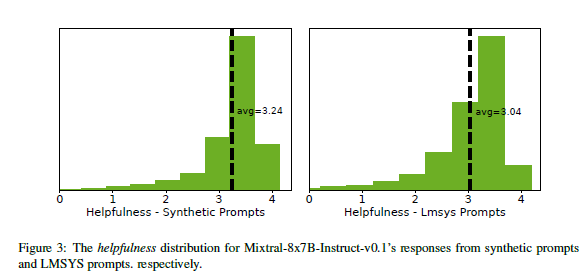 그림 3에서는 합성 단일 턴 프롬프트와 LMSYS 프롬프트 간의 비교를 제공합니다. 구체적으로, 각 프롬프트 세트에 대해 Mixtral-8x7B-Instruct-v0.1 모델을 사용하여 응답을 생성하고, Nemotron-4-340B-Reward를 사용하여 응답의 도움 정도 점수를 주석 처리합니다. 합성 프롬프트와 LMSYS 프롬프트의 도움 정도 분포를 플로팅합니다. 우리는 합성 프롬프트의 평균 도움이 LMSYS 프롬프트보다 높다는 것을 관찰합니다. 이는 간단한 프롬프트일수록 "도움이 되는" 것이 더 쉽기 때문에, LMSYS 프롬프트가 평균적으로 합성 단일 턴 프롬프트보다 더 어렵고 복잡함을 의미합니다.