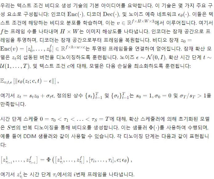 3. 텍스트-비디오 확산 모델