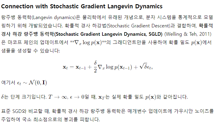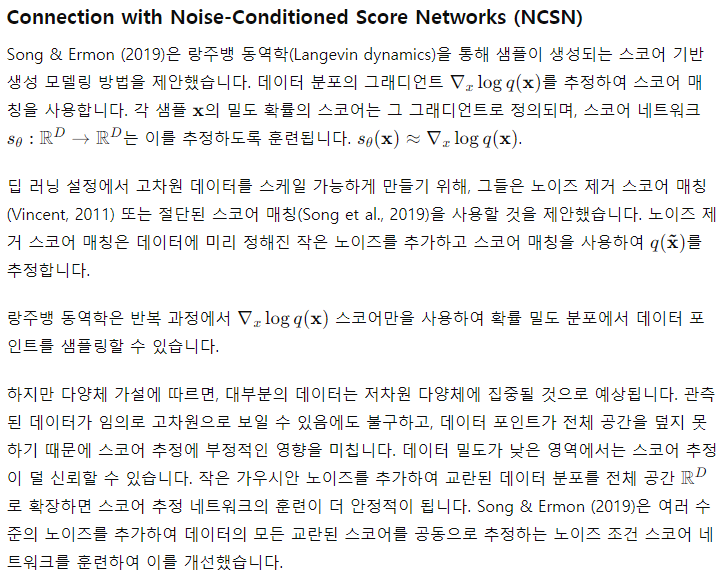 확산 모델이란 무엇인가요? 유사한 아이디어를 기반으로 한 여러 확산 기반 생성 모델이 제안되었습니다. 여기에는 확산 확률 모델(Sohl-Dickstein et al., 2015), 노이즈 조건 스코어 네트워크(NCSN; Yang & Ermon, 2019), 및 노이즈 제거 확산 확률 모델(DDPM; Ho et al. 2020)이 포함됩니다.
