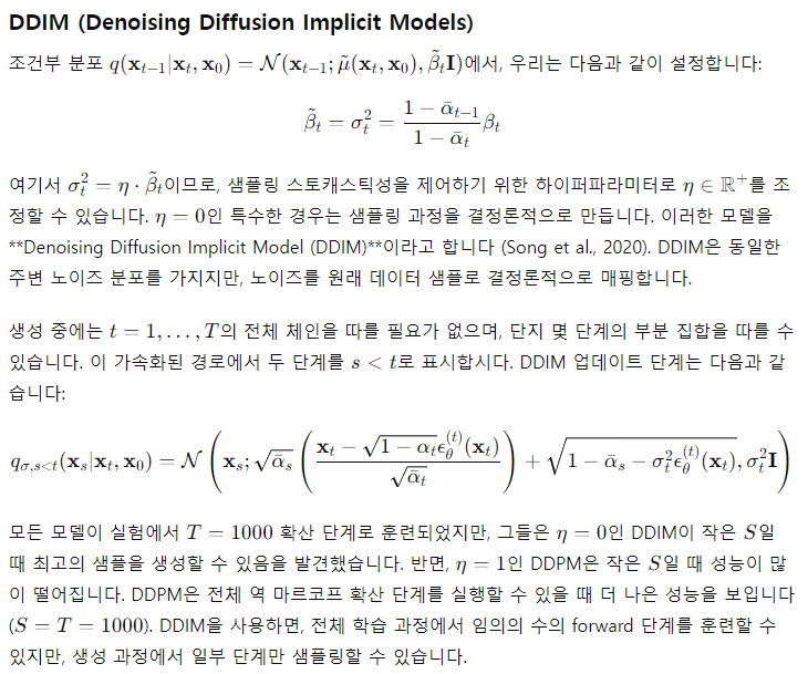 DDPM에 비해 DDIM은 다음을 수행할 수 있습니다: