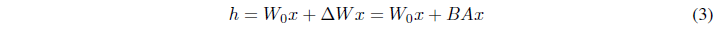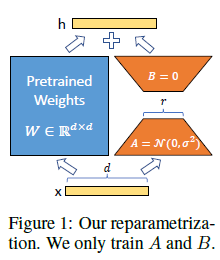 Figure 1: 우리의 재파라미터화. 우리는 A와 B만 훈련합니다.