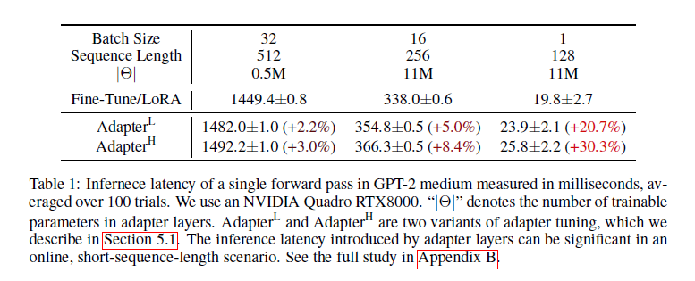 어댑터 레이어는 추론 지연을 초래합니다