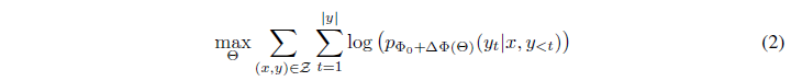 우리의 제안은 학습 목표와는 무관하지만, 우리는 언어 모델링을 우리의 동기 사용 사례로 삼습니다. 아래는 언어 모델링 문제에 대한 간단한 설명이며, 특히 특정 작업 프롬프트가 주어진 조건부 확률의 최대화에 관한 것입니다.