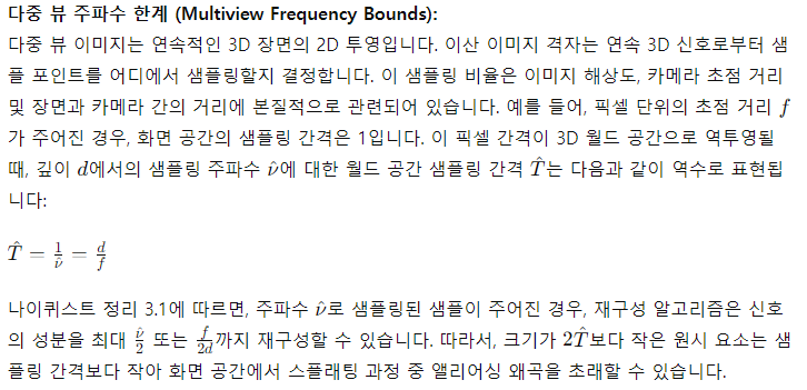 이 섹션에서는 먼저 샘플링 정리에 대해 검토하여 앨리어싱 문제를 이해하는 기초를 다집니다. 이후, 3D Gaussian Splatting(3DGS) [18] 및 그 렌더링 과정을 소개합니다.