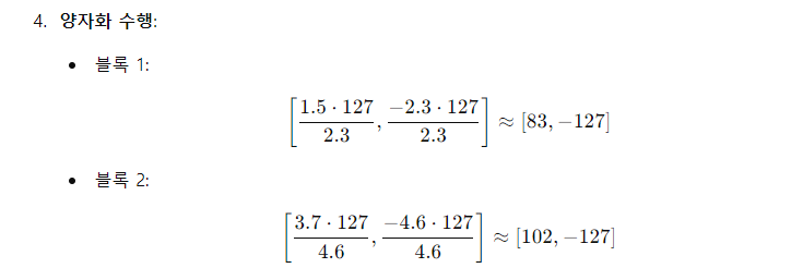 - 절대 최대 재스케일링을 통해 입력 가중치 텐서를 [−1, 1] 범위로 정규화하여 양자화합니다.
