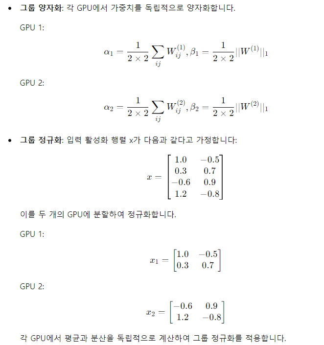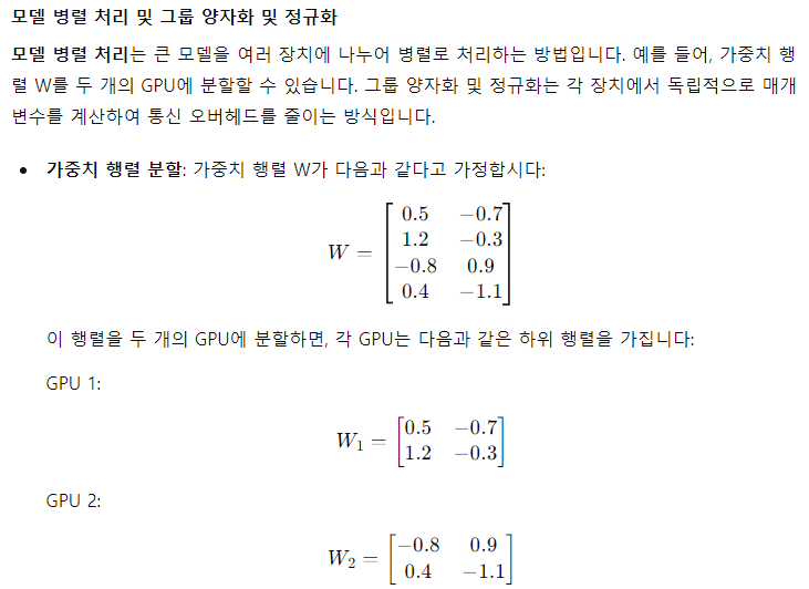 모델 병렬 처리와 그룹 양자화 및 정규화