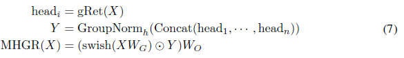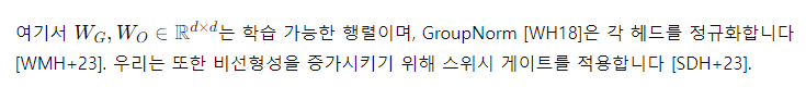 다중 헤드 어텐션 [VSP+17] 및 다중 스케일 유지 [SDH+23]와 유사하게, 우리는 각 헤드에 게이티드 유지를 적용하고 출력을 결합합니다.