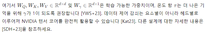 우리는 GPU 클러스터를 유지 관리한 Ben Huntley에게 감사를 표하고 싶습니다. 장기 시퀀스 훈련은 [LML+23]의 내부 버전인 CUBE를 사용합니다. 우리는 FLA [YZ24]를 기반으로 게이티드 유지의 트라이톤 커널을 구현했습니다.