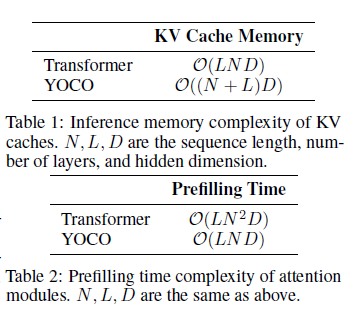 표 1: KV 캐시의 추론 메모리 복잡도. N, L, D는 시퀀스 길이, 레이어 수, 숨겨진 차원입니다.
