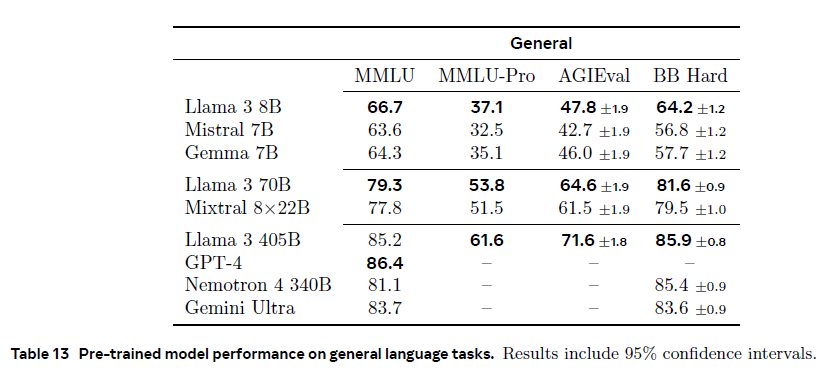 고품질 기초 모델 개발은 여전히 초기 단계에 있습니다. Llama 3 개발 경험을 통해 이러한 모델의 상당한 개선 가능성이 있음을 알 수 있었습니다. Llama 3 모델 가족을 개발하는 동안 고품질 데이터, 확장성, 단순성에 강하게 집중하는 것이 일관되게 최고의 결과를 가져온다는 것을 발견했습니다. 초기 실험에서 더 복잡한 모델 아키텍처와 훈련 레시피를 탐구했지만, 이러한 접근 방식이 모델 개발에 추가 복잡성을 더하는 것에 비해 그 이점이 크지 않다는 결론에 도달했습니다.
