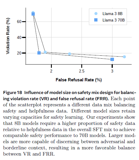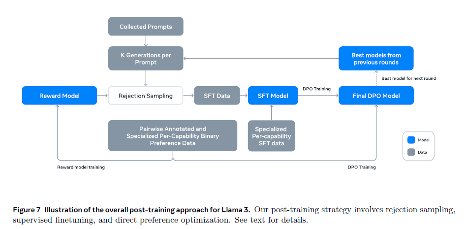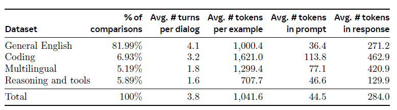 - 복잡성 관리: 우리는 모델 개발 과정을 확장할 수 있는 설계를 선택합니다. 예를 들어, 혼합 전문가 모델(Shazeer et al., 2017)보다는 표준 조밀한 Transformer 모델(Vaswani et al., 2017) 아키텍처를 소규모로 채택하여 훈련 안정성을 극대화합니다. 마찬가지로, 우리는 감독된 미세 조정(SFT), 거부 샘플링(RS), 직접 선호 최적화(DPO; Rafailov et al., 2023)를 기반으로 한 비교적 간단한 사후 훈련 절차를 채택하여 복잡한 강화 학습 알고리즘(Ouyang et al., 2022; Schulman et al., 2017)을 사용하는 것보다 안정성이 높고 확장 가능성이 크도록 합니다.