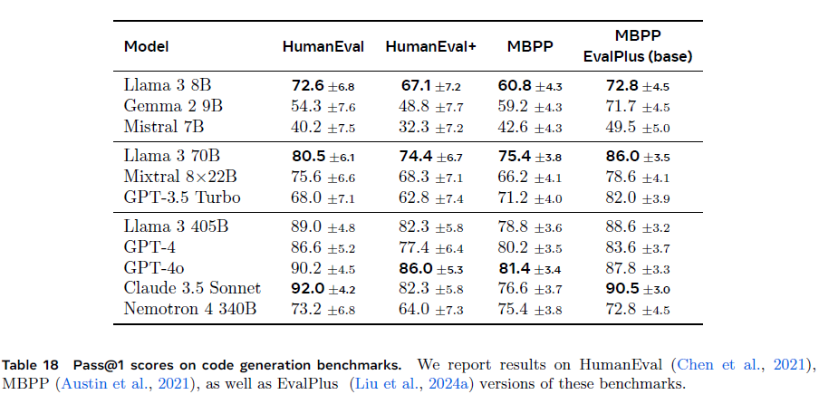 | 코드 | HumanEval (0-shot) | 72.6 | 54.3 | 40.2 | 80.5 | 75.6 | 68.0 | 89.0 | 73.2 | 86.6 | 90.2 | 92.0 |