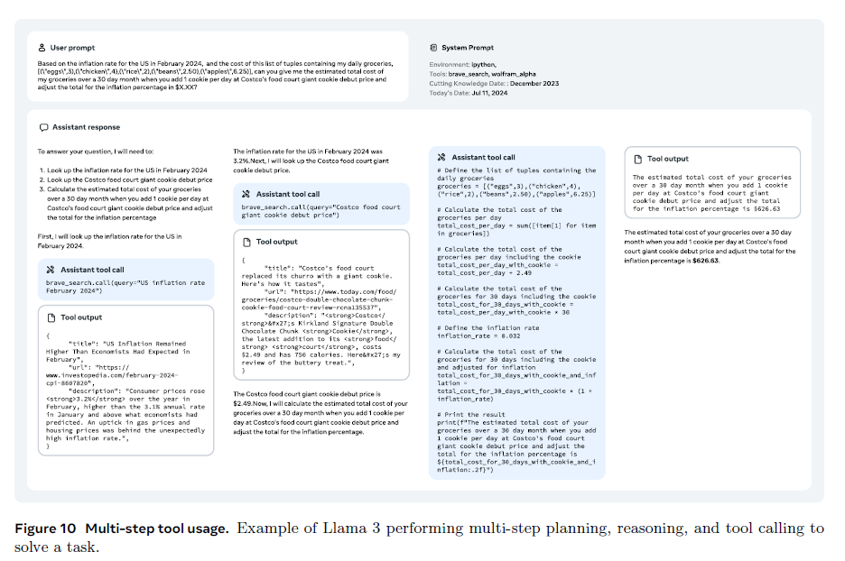 - 언어 모델 사후 훈련: 사전 훈련된 언어 모델은 풍부한 언어 이해력을 가지고 있지만, 우리가 기대하는 방식으로 명령을 따르거나 동작하지 않습니다. 우리는 여러 라운드의 인간 피드백을 통해 모델을 조정합니다. 각 라운드에는 명령 조정 데이터를 통한 감독된 미세 조정(SFT)과 직접 선호 최적화(DPO; Rafailov et al., 2024)가 포함됩니다. 이 사후 훈련 단계에서는 도구 사용과 같은 새로운 기능도 통합하며, 코딩 및 추론과 같은 다른 영역에서도 큰 개선을 관찰합니다. 자세한 내용은 섹션 4를 참조하세요. 마지막으로, 사후 훈련 단계에서 모델에 안전성 완화 조치도 통합되며, 이에 대한 자세한 내용은 섹션 5.4에 설명되어 있습니다.