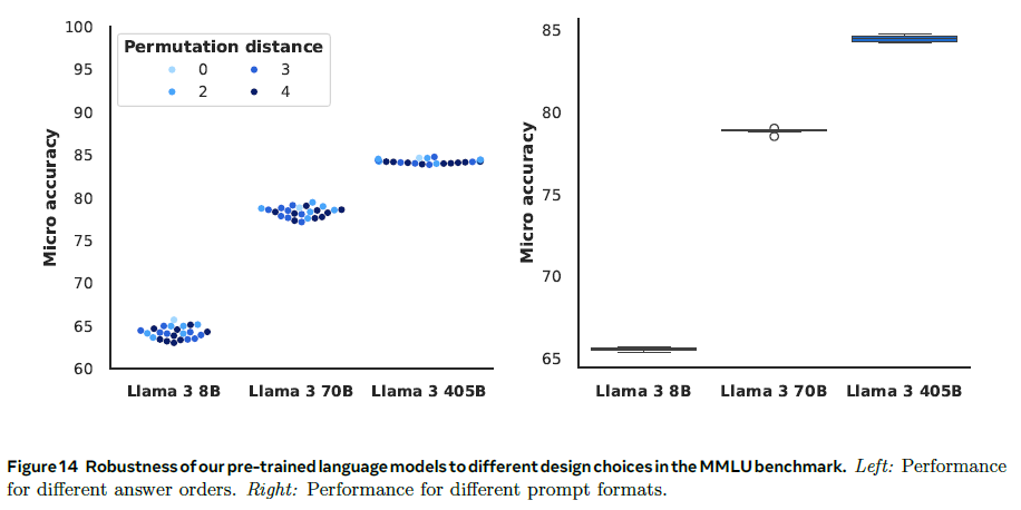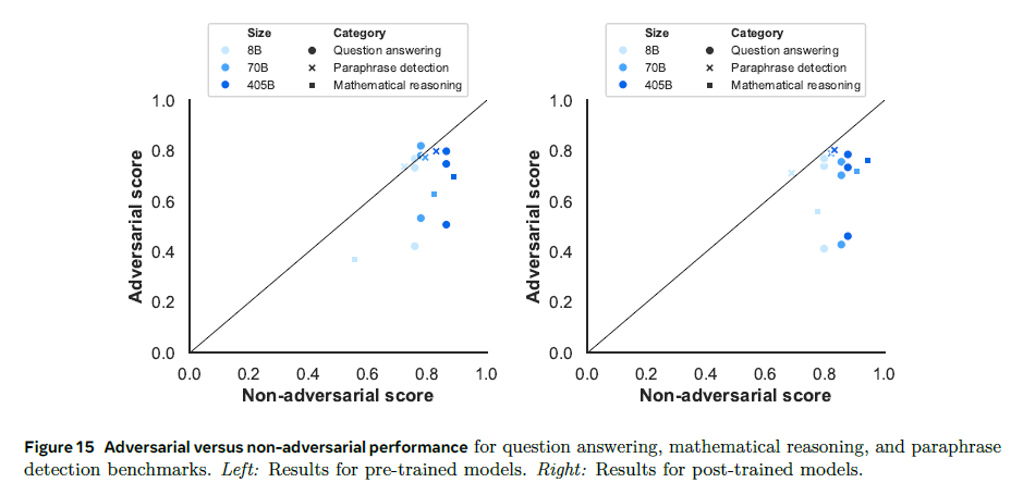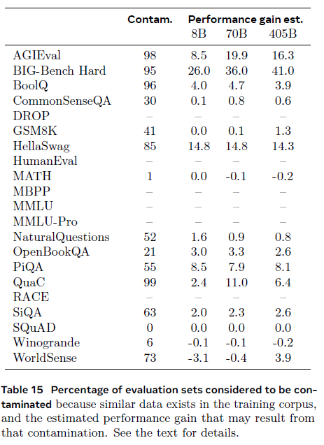 OpenAI (2023a)를 따라, 우리는 GSM8k (Cobbe et al., 2021) 및 MATH (Hendrycks et al., 2021b) 훈련 세트에서 어닐링의 효과를 평가합니다. 어닐링은 사전 훈련된 Llama 3 8B 모델의 GSM8k 및 MATH 검증 세트에서 성능을 각각 24.0% 및 6.4% 향상시켰습니다. 그러나 405B 모델에서는 향상이 미미하여 우리의 주력 모델이 강력한 인컨텍스트 학습 및 추론 능력을 가지고 있으며, 특정 도메인의 훈련 샘플 없이도 우수한 성능을 발휘할 수 있음을 시사합니다.