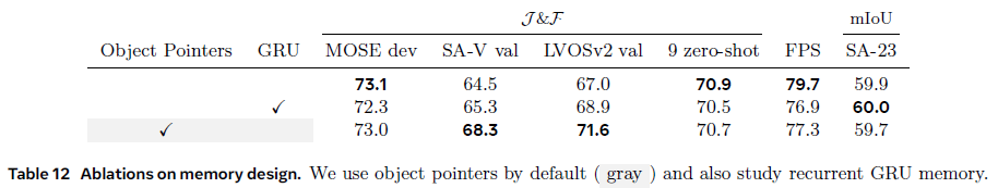 기본적으로 객체 포인터를 사용하고(회색), 순환 GRU 메모리도 연구합니다.