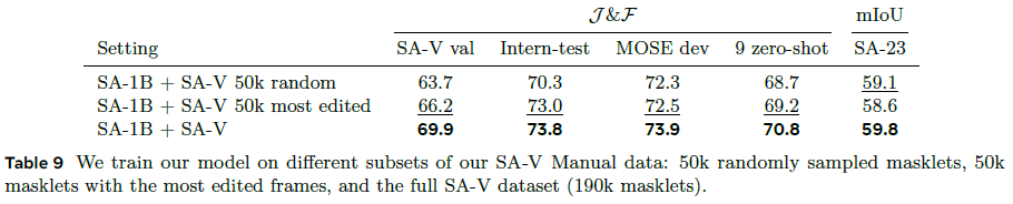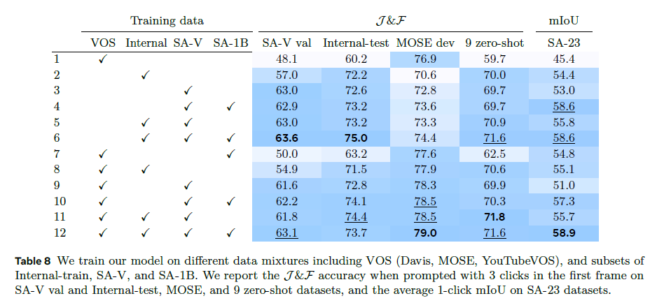 훈련 데이터 | SA-V 검증 | 9 제로샷 |