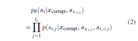 우리는 각 빈칸의 토큰을 항상 왼쪽에서 오른쪽 순서로 생성합니다. 즉, 스팬 s_를 생성할 확률은 다음과 같이 분해됩니다: