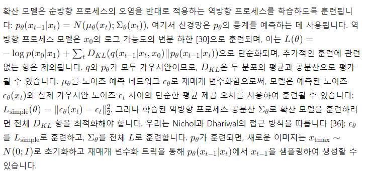 확산 모델 [19, 54]과 스코어 기반 생성 모델 [22, 56]은 특히 이미지 생성 모델로서 성공적이었으며 [35, 46, 48, 50], 많은 경우 이전에 최첨단이었던 생성적 적대 신경망(GANs) [12]을 능가했습니다. 지난 2년 동안 DDPM의 발전은 주로 향상된 샘플링 기법 [19, 27, 55]에 의해 이루어졌으며, 특히 분류기 없는 가이드 [21], 픽셀 대신 노이즈를 예측하도록 확산 모델을 재구성하는 것 [19], 저해상도 기본 확산 모델이 업샘플러와 병렬로 훈련되는 캐스케이드 DDPM 파이프라인 [9, 20]이 주목할 만합니다. 위에 나열된 모든 확산 모델의 경우, 컨볼루션 U-Net [49]이 사실상의 기본 백본 아키텍처로 사용됩니다. 동시 진행된 연구 [24]는 DDPM을 위한 주의 기반의 새로운 효율적인 아키텍처를 도입했으며, 우리는 순수 트랜스포머를 탐구합니다.