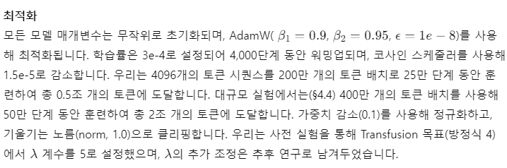 ※ 이 연구에서는 트랜스포머 아키텍처를 사용하지만, Transfusion은 이름과 상관없이 다른 아키텍처와도 잠재적으로 작동할 수 있습니다.