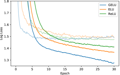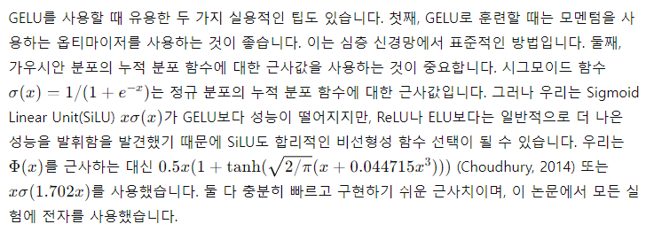 상황은 BERT와 GPT에서 GELU가 사용되기 시작하면서 변화하였고, 현재 GELU는 최첨단 트랜스포머의 기본 활성화 함수로 자리 잡았습니다. 이제 GELU는 SiLU보다 훨씬 더 자주 사용되고 있습니다.