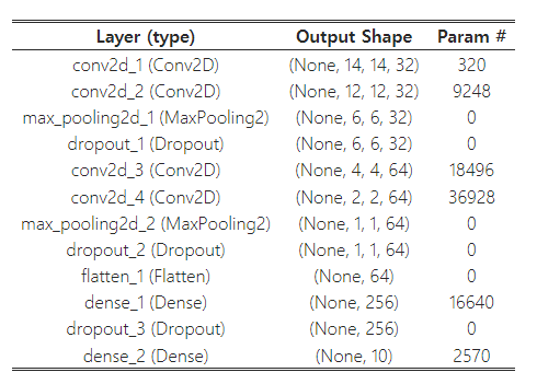 표 1. Keras(Chollet et al., 2015)에서 가져온 VGG 유사 CNN 구조.