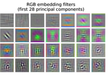 왼쪽: ViT-L/32의 RGB 값에 대한 초기 선형 임베딩 필터.