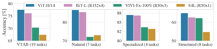 그림 2: VTAB 성능을 자연, 특수화, 구조화된 작업 그룹으로 나눈 결과