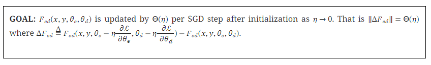 우리는 DeepNet의 모델 업데이트가 적절한 파라미터 α와 β를 사용하면 상수로 제한될 수 있음을 보입니다. 우리의 분석은 확률적 경사 하강법(SGD) 업데이트를 기반으로 하며, 경험적으로 Adam 옵티마이저(Kingma와 Ba, 2015)에서도 잘 작동함을 확인했습니다. 우리는 인코더-디코더 아키텍처에 대한 분석을 제공하며, 이는 동일한 방식으로 인코더 전용 또는 디코더 전용 모델에도 자연스럽게 확장될 수 있습니다. Zhang et al. (2019b)와 유사하게, 우리는 모델 업데이트의 목표를 다음과 같이 설정합니다.