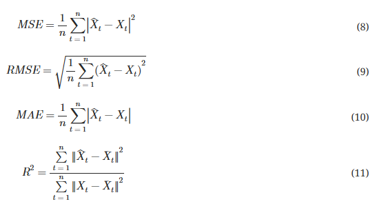 평가 지표는 평균 절대 오차(MAE), 평균 제곱근 오차(RMSE), 평균 절대 백분율 오차(MAPE) 및 R^2입니다.