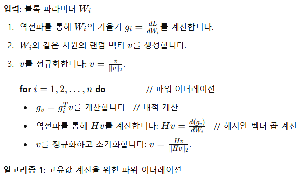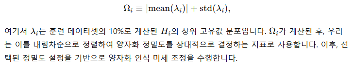 - 고유값: 헤시안의 고유값은 곡률의 크기를 의미합니다. 고유값이 크면 해당 레이어가 손실 함수의 변화에 민감하게 반응한다는 뜻이므로 양자화 시에 성능 손실이 발생할 가능성이 큽니다.