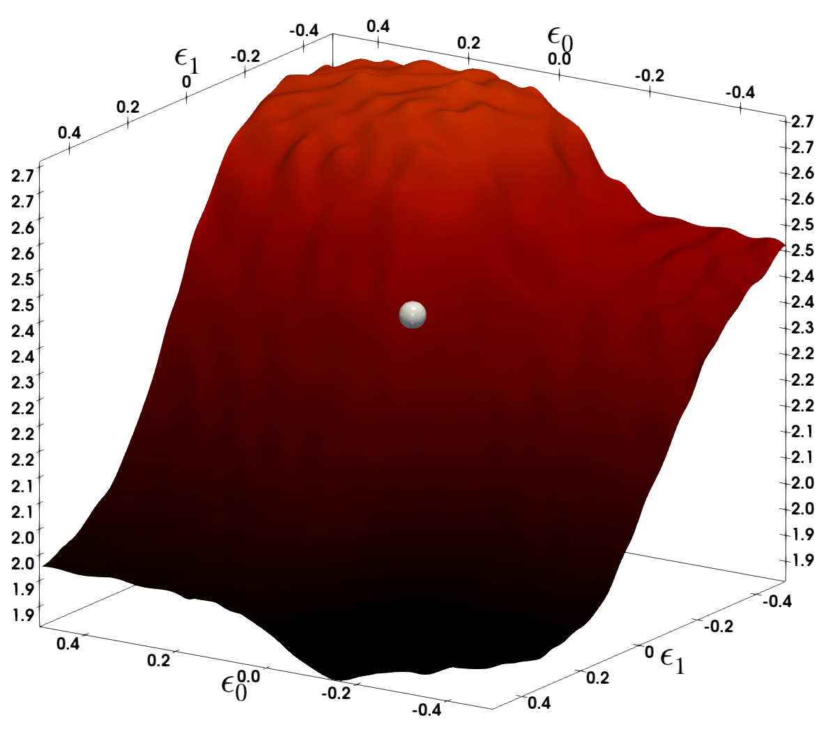 그림 6: SST-2의 다양한 레이어에 대한 손실 지형은 Hessian의 첫 두 주요 고유벡터를 따라 파라미터를 변동시키면서 시각화했습니다. 은색 구체는 BERT 모델이 수렴한 파라미터 공간의 지점을 나타냅니다.