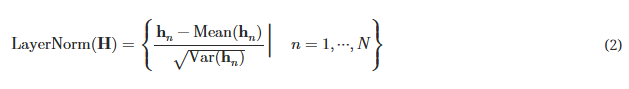 여기서 \( H = \{ h_1, \dots, h_N \} \in \mathbb{R}^{N \times D} \) 는 차원 \( D \)의 \( N \)개의 임베딩된 토큰을 포함하며, 윗첨자는 레이어 인덱스를 나타냅니다.