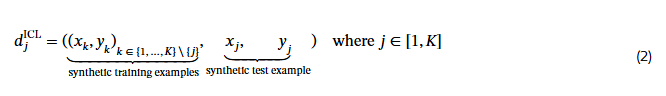1단계 - Leave-one-out 작업 생성: 학습 예제에서 j 번째 예제 쌍을 제외함으로써 다음과 같은 합성 작업을 만들 수 있습니다: