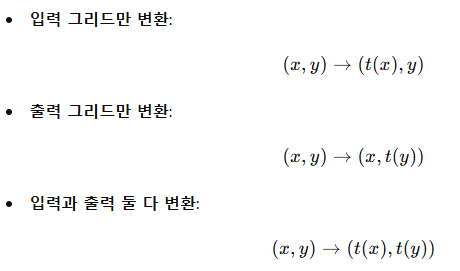 (c) 기하학적 변환 마지막으로, 우리의 합성 작업들은 다양한 기하학적 변환을 통해 강화되었습니다. 이러한 변환은 기본 변환(회전, 반사, 임의 이동 및 크기 스케일링), 패턴 연산(임의 패칭, 타일링, 반복), 색상 순열, 여러 기본 변환을 순차적으로 적용한 복합 변환을 포함합니다. 이러한 변환은 세 가지 방식으로 적용됩니다: