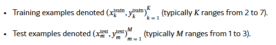 - 학습 예제는 ( x_k^{train}, y_k^{train})_{k=1}^K 로 표시됩니다 (일반적으로 K 는 2에서 7 사이).