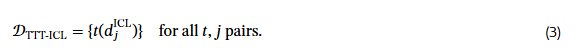 3.1 데이터 생성 주어진 작업에 대해, 학습 입력-출력 쌍 ( x_k^{train}, y_k^{train} ){k=1}^K 의 집합을 가져와 이를 테스트 시점 훈련(TTT) 작업의 증강된 세트 𝒟{TTT} 로 변환합니다. 𝒟_{TTT} 는 두 단계의 과정을 통해 생성됩니다. 첫 번째로, 주어진 학습 입력-출력 쌍에서 leave-one-out 방식의 맥락 내 학습(in-context learning) 작업 집합을 만듭니다. 두 번째로, 이 집합에 대해 가역적인 규칙 기반 변환을 사용하여 증강된 데이터셋을 얻습니다. 이 과정은 그림 2에 요약되어 있습니다.