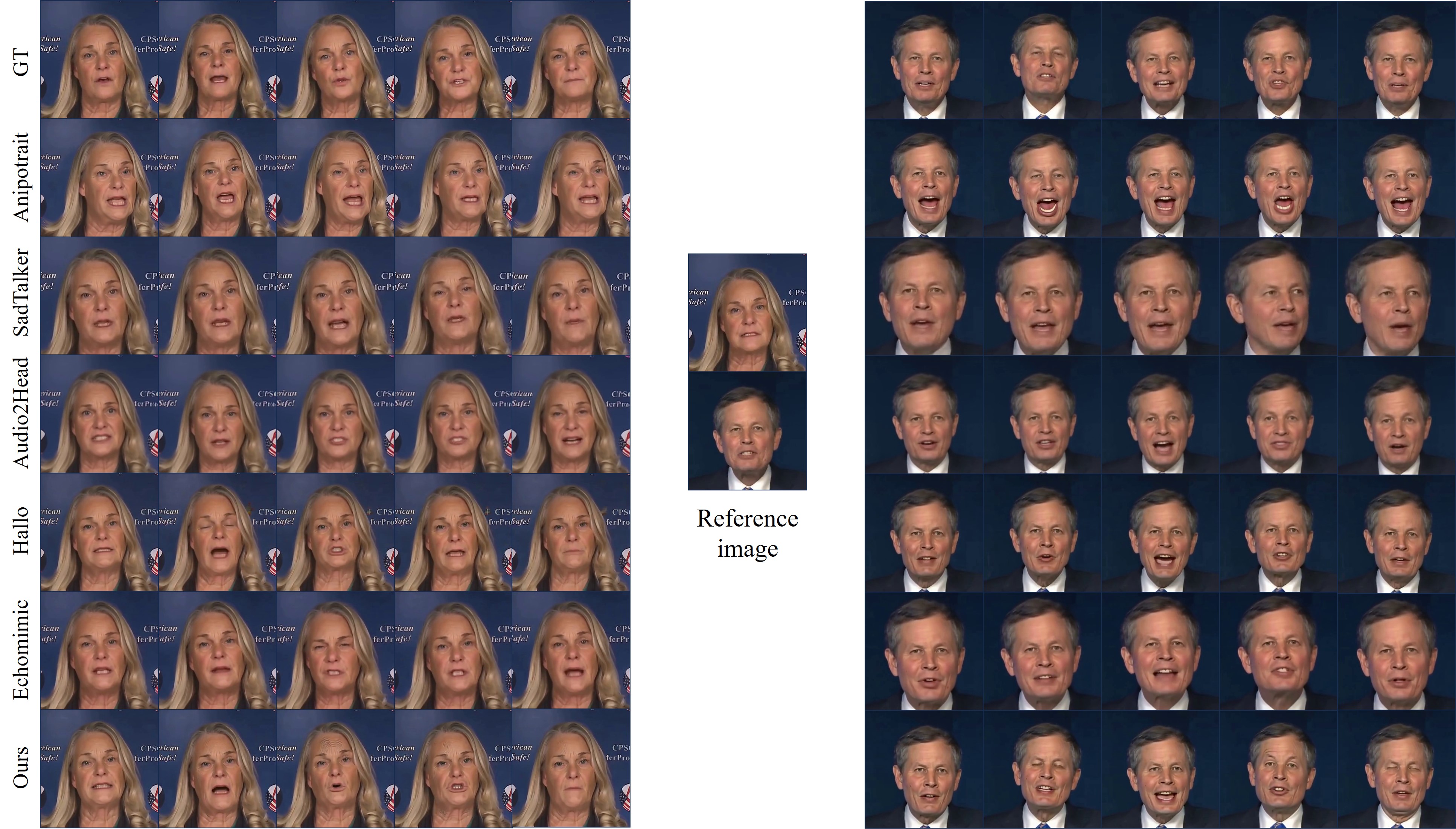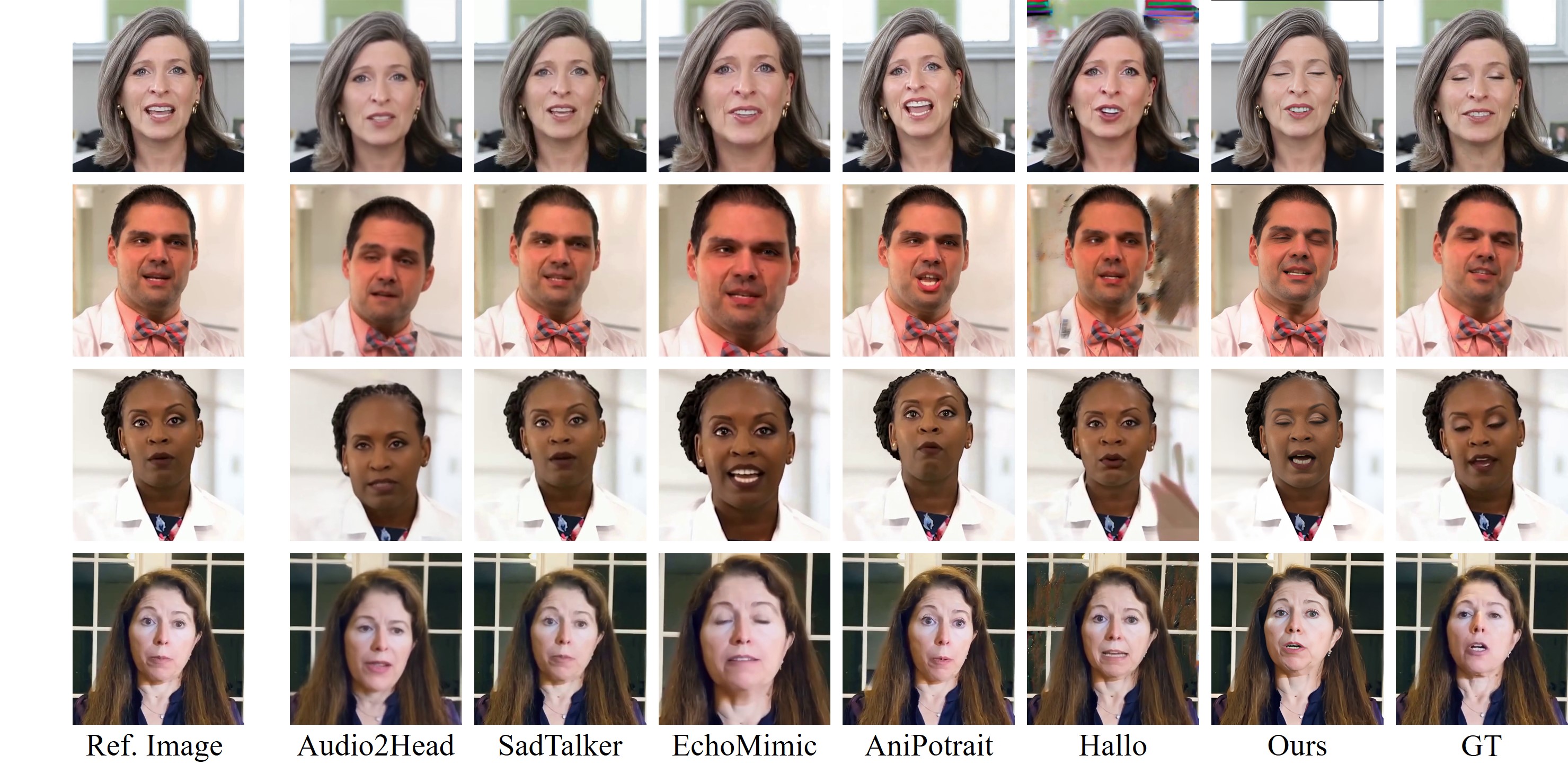 그림 7: HDTF 데이터셋에서 기존 접근법과의 질적 비교.