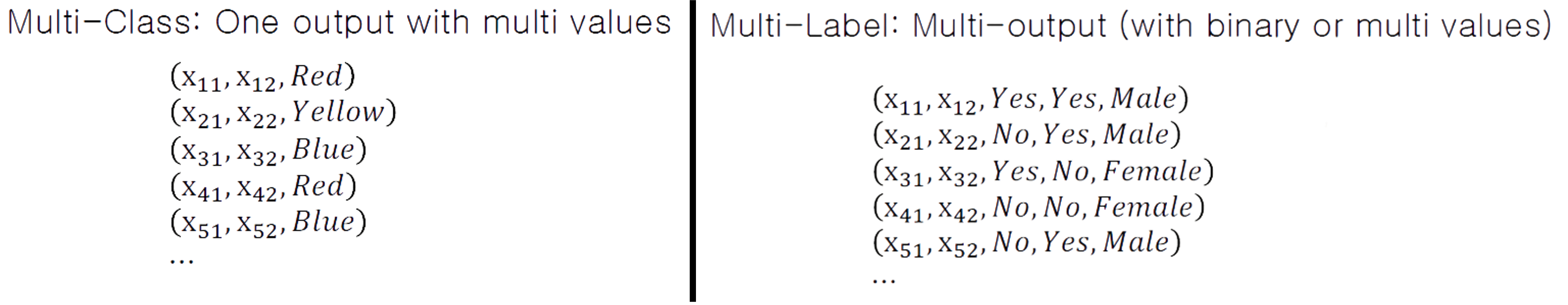 우리가 정리한 Regression, Classification, Multi-Label을 요약하면 다음과 같다.