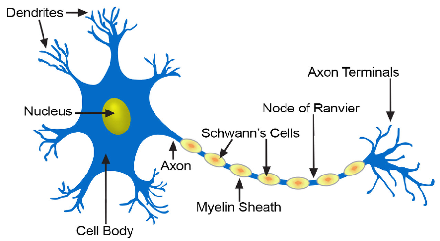 간단하게 이 뉴런의 구조를 Cell body, Dendrite, Axon으로 나눌수 있다.