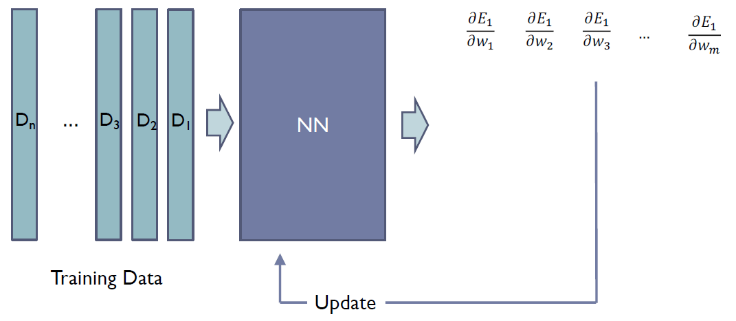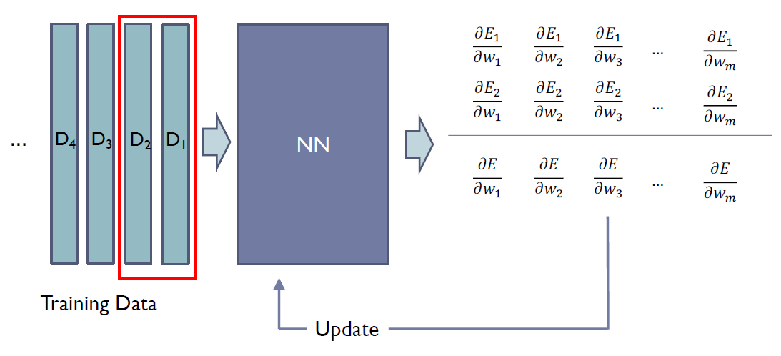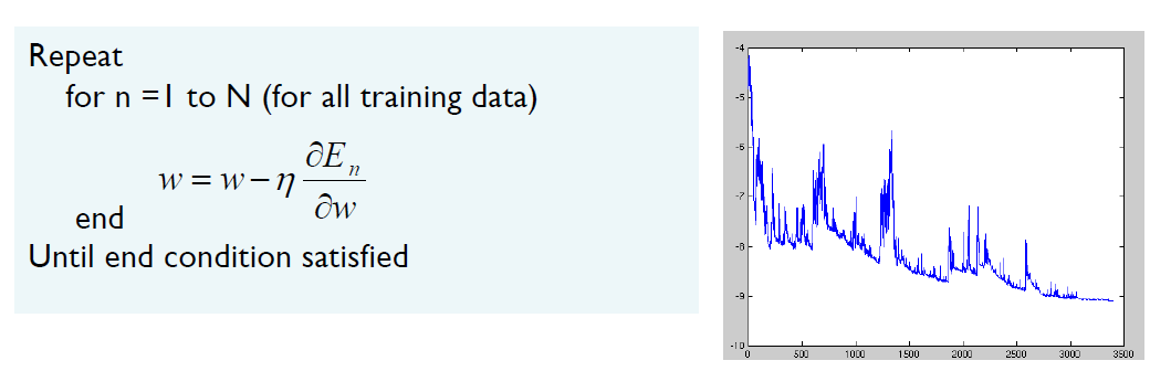 생각해보면 이는 큰 데이터에서 비효율적일 수 있다. 모든 E의 미분에 대핸 계산을 진행해야되기 때문이다.