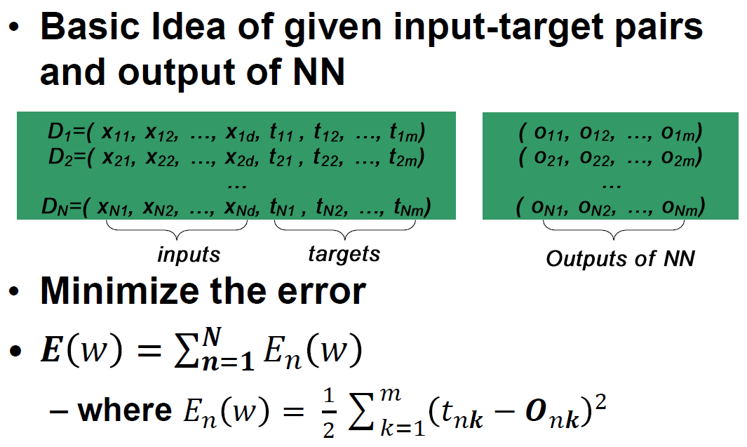 𝑁𝑁(𝒘, 𝒙) = 𝒕, 𝒘 = (𝑤1 ,𝑤2 ,…,𝑤n)으로 정의하게 된다면