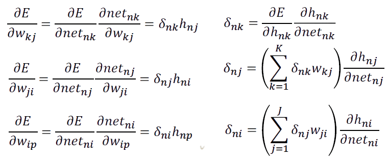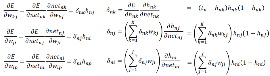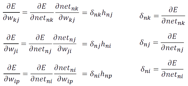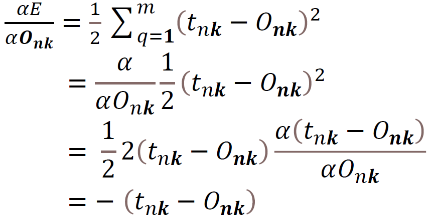 우리는 경사하강법을 적용하기 때문에, E에 대한 미분 값들을 구해야된다.