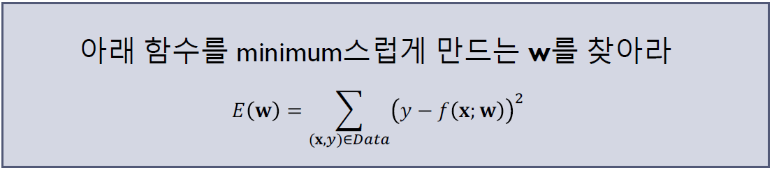 아래의 함수를 minimum스럽게 만드는 w를 찾는 문제로 변경하게 된다!