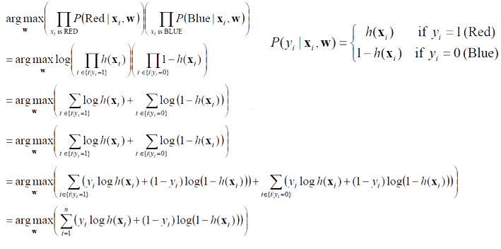 유도된 식은 Cross Entropy라고 불리며, 이를 활용하면 Red, Blue에 대한 확률을 최대화하는 경향으로 가는 것을 확인할 수 있다. 더 정확한 설명으로는 Cross Entropy는 정확하지 않은 신뢰할 수 있는 예측에 대해 모델에 더 심각한 페널티를 주기 때문에 분류 문제에 평균 제곱 오차(MSE)보다 더 적합한 손실 함수로 이해하면 된다.